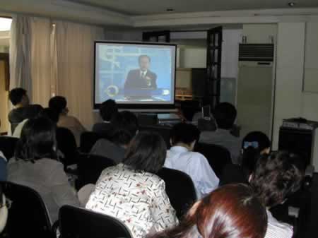 大家正認真地觀看“余世維的光盤”