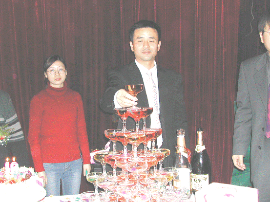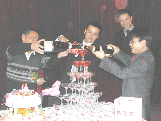 經理、副經理與優秀員工共同開啟“歡慶之酒”