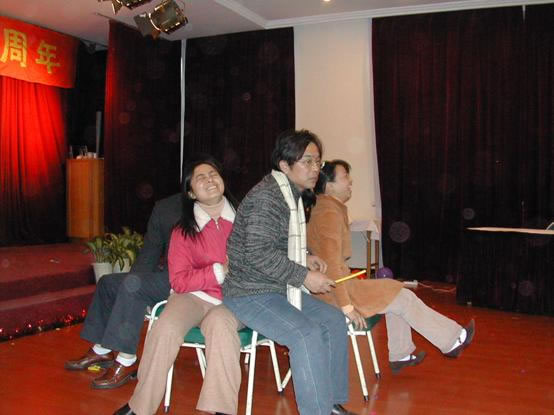 《細水長流》5人/組*2組:每人嘴上含一只杯子,第一人杯中倒滿水,依次將杯中的水倒入下一人杯中,不許用手腳,最快并杯中水最多者為勝