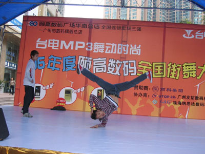 連續多日陰雨的廣州在4月2日這天奇跡般的晴朗,由商科集團贊助的“臺電MP3 舞動時尚—全國街舞邀請賽”也在這天正式拉開帷幕。魔幻的舞步、激情的