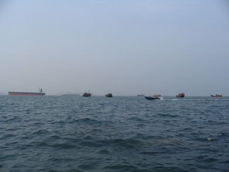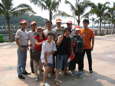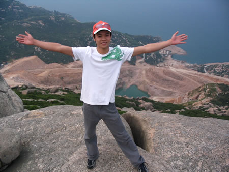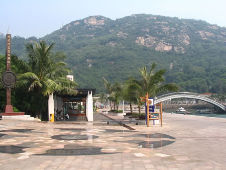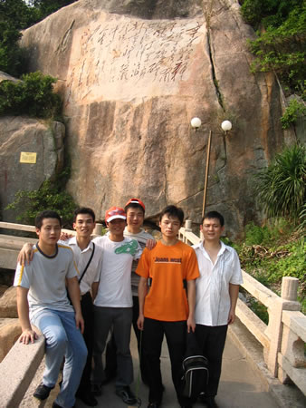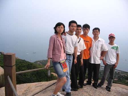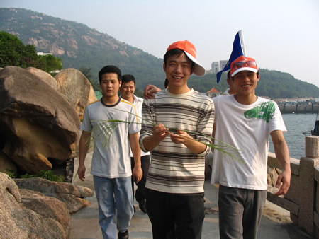 歡呼聲中我們踏上了十一之旅,來到富有豐富人文、歷史景觀的外伶仃島,外伶仃島離香港長洲島只有6海里,主峰伶仃峰高達311.8米,是萬山群島最高峰。站在伶仃峰可清楚的觀望香港的景色(如太平山、青馬大橋等香江景物)。天氣晴朗不起霧的時侯,清晨在山頂?shù)群蛱枏拇蠛5牡仄骄上跳出,冉冉升起,整個洋面一片金黃,霞光萬丈,美不勝收,真是一大奇景可惜我們這次沒有看到此景。。!伶仃洋上最有影響,千古傳誦的是文天祥“人生自古誰無死、留取丹心照汗青”這一千古絕唱。這是毛澤東主席生前手書的文天祥《過伶仃洋》詩的石刻。