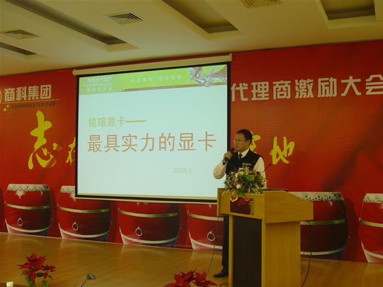 銘瑄產品經理趙經理進行《銘瑄---最具實力的顯卡》的詳細介紹,從銘瑄顯卡研發、銷售到廣告投放。說明銘瑄如何是最具實力的顯卡,現場掌聲不斷。