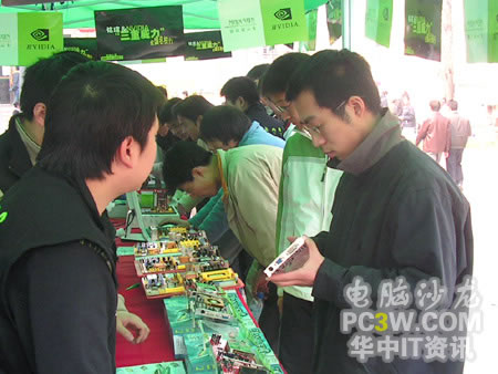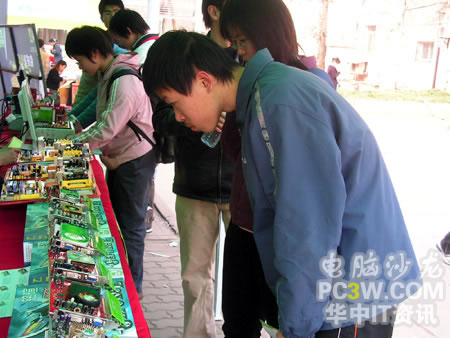 看就要看個仔細,不少同學拿起自己所喜愛的顯卡后,簡直是愛不釋手。從各個角度把演示產品瞧了個仔細。