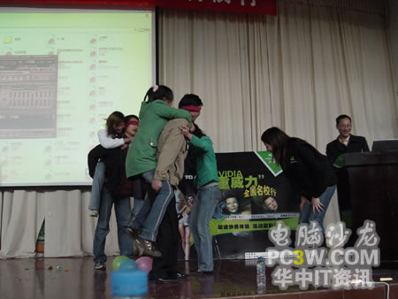 隨著上午放學時間的到來,武漢大學桂園產品演示區這邊的人流量也多了起來,巡展場面達到了今天的最高峰。火爆的場面甚至連小編自己也沒想到。路過的同學們紛紛走過來欣賞和體驗NVIDIA及銘瑄顯卡所帶來的震撼效果。
