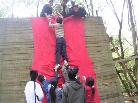 “中國龍”隊(duì)正以優(yōu)美的身姿體驗(yàn)高難度的“信任背摔”項(xiàng)目