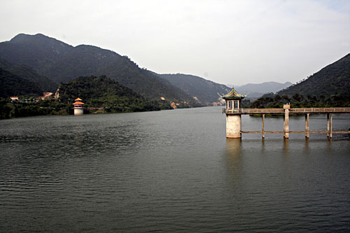 在平穩(wěn)的行駛了一個(gè)半小時(shí)之后,大家來到了期待已久的風(fēng)景區(qū)。一下汽車,清新的空氣便撲面而來,對于在城市里住久了的人們來說,這是難得的享受。同事們興奮的一起涌上庫區(qū)大壩,湖水清澈,山林密茂的九龍湖便呈現(xiàn)在眼前。