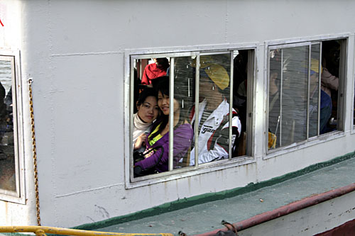 心急的同事已經(jīng)登上了游船頂層,不過這艘游船太小。湖區(qū)專門調(diào)來可以乘座近百人的大型游船