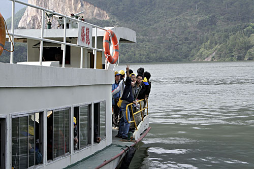 大家舒服地坐在船上,安靜的享受這難得的下午日光浴。游船沿著來時(shí)的路線,安全的行駛到了原來的碼頭,同事們依次走下船,并在水壩上合影留念。
