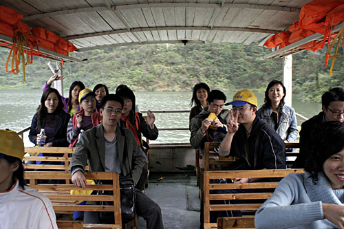 游船劃過下午平靜的湖面,在溫暖的陽光和疲憊的雙重作用下,許多同事開始打起了盹。