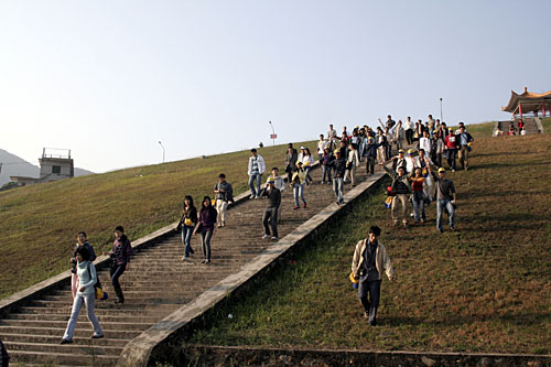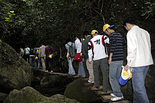 經(jīng)過大家的努力,越過驚險(xiǎn)的鐵索吊橋,穿過石階小路和竹林,終于登上了山頂,這里樹林依舊枝繁葉茂,同事們在休息調(diào)整一番后,沿著旁邊的小路下山回到了山腳下的出發(fā)地點(diǎn)。經(jīng)過這次大運(yùn)動(dòng)量的溯溪爬山,大家不僅鍛煉了身體,增進(jìn)了友誼和了解,同時(shí)還欣賞到了溪水山澗的自然美景,留下了商科同仁自己的腳步身影。