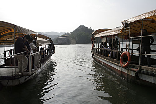 玩完競渡項(xiàng)目后,已經(jīng)是下午三點(diǎn)多了,太陽也懶洋洋的散發(fā)出溫暖的光芒。經(jīng)過了這么多活動(dòng),大家體力消耗也是蠻大的,于是我們登上了游船,啟程離開美麗的九龍湖。