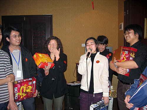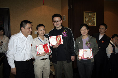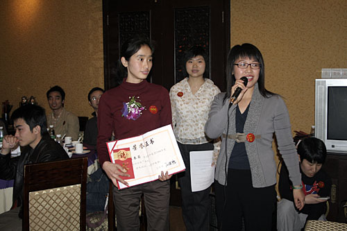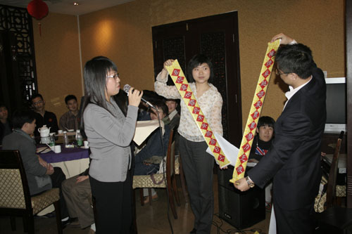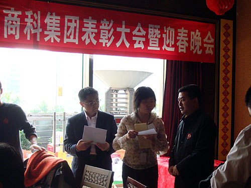 晚會(huì)開始前商科集團(tuán)領(lǐng)導(dǎo)對(duì)本年度表現(xiàn)優(yōu)秀的員工進(jìn)行了嘉獎(jiǎng)和表彰他們是:第四季度部門之星:技術(shù)部 :敖亞軍、業(yè)務(wù)部:吳翠、市場(chǎng)部:臧永剛,第四季商科標(biāo)兵:財(cái)務(wù)部:羅春菊,第四季度銷售標(biāo)兵 :田勇,2006年度杰出員工:馮燕蘭,優(yōu)秀職能經(jīng)理 :楊毅,優(yōu)秀經(jīng)理 : 邵清泉