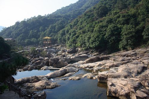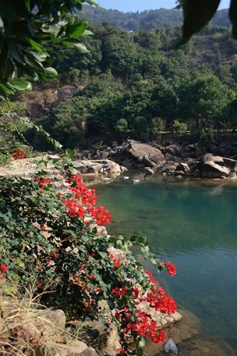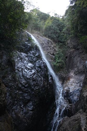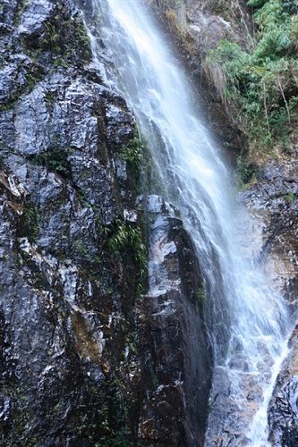 南昆山西南面的石峽山。峽谷盡頭,懸崖峭壁,約有20米高。該瀑布四季不斷,每年汛期,更為壯觀。游人沿著石階拾級而上,未到景點,先聞瀑聲。站在距瀑布近10米的涼亭上,水花濺落周身,暑氣頓消。由于我們?nèi)サ氖墙炝耍钥吹降木吧]有像上面描述的那么美。