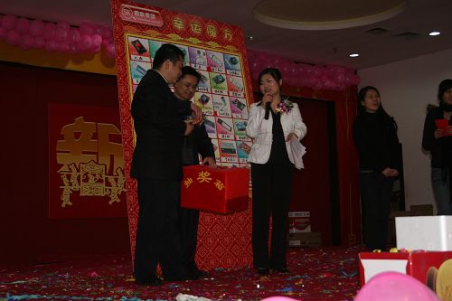 在晚宴進(jìn)行的過(guò)程中,本次晚會(huì)的重要項(xiàng)目,也是同事們最期待的主要活動(dòng):幸運(yùn)大抽獎(jiǎng)開始了。