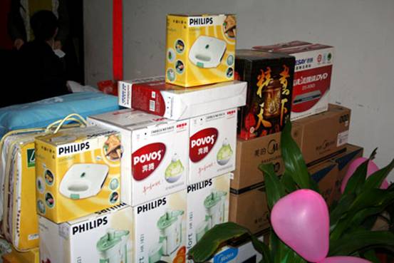 面包機(jī)、電烤箱、手表、高檔床上用品、DVD播放器……獎(jiǎng)品十分豐富