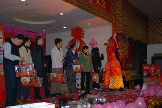 抽獎(jiǎng)單元持續(xù)進(jìn)行了兩個(gè)多小時(shí),現(xiàn)場(chǎng)氣氛非常火熱,大家都懷著期盼和興奮的心情期待著自己的禮物。公司準(zhǔn)備的非常豐富,再加上公司孫總、熊總、劉總等領(lǐng)導(dǎo)層及各位產(chǎn)品經(jīng)理不斷輪流上臺(tái)為大家奉獻(xiàn)額外的現(xiàn)金大獎(jiǎng),使得中獎(jiǎng)率高達(dá)95%以上,幾乎每個(gè)同事們都拿到了屬于自己的新年禮物。