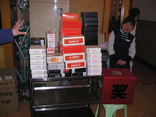 先來(lái)看看我們堆的和小山一樣的獎(jiǎng)品,夠豐盛吧