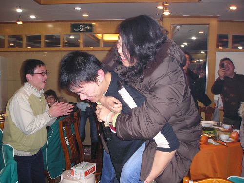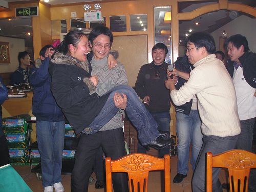 嘿嘿,獎(jiǎng)品也不是白拿滴,總得付出點(diǎn),以下便是他們表演的節(jié)目了,反串,豬八戒背媳婦,花樣真不少