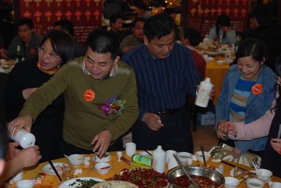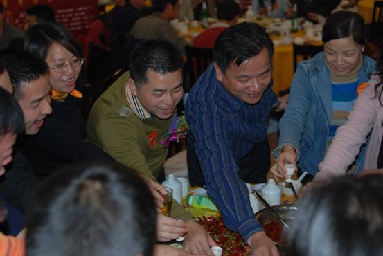 經(jīng)過(guò)2小多小時(shí)的文藝表演與游戲后,大家已經(jīng)饑腸轆轆,公司領(lǐng)導(dǎo)宣布晚宴正式開(kāi)始,首先公司領(lǐng)導(dǎo)層向大家祝福。