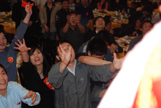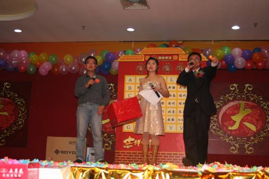 經(jīng)過(guò)了7個(gè)小時(shí)的文藝表演、游戲、晚宴、抽獎(jiǎng)等環(huán)節(jié),商科集團(tuán)迎春晚會(huì)暨08年表彰大會(huì)終于圓滿(mǎn)結(jié)束了。