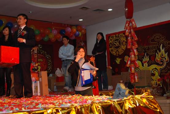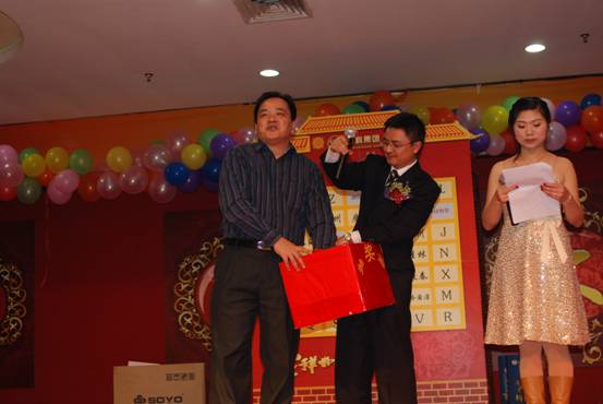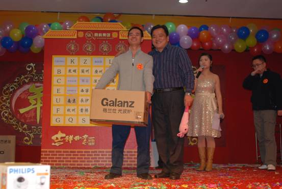 在歡聲笑語(yǔ)中,在聲聲祝福聲中,同事們喜氣洋洋的領(lǐng)著自己的獎(jiǎng)品及幸福的心情,離開(kāi)會(huì)場(chǎng)。在這一個(gè)喜慶的晚會(huì)中,我們?yōu)檫^(guò)去一年中取得的成績(jī)感到驕傲,我們分享收獲的喜悅。我們?yōu)樾碌囊荒曜8#覀冦裤匠錆M(mǎn)希望的2009。讓我們共同祝福商科集團(tuán)在新的一年里百尺竿頭更進(jìn)一步,為公司、為員工、為經(jīng)銷(xiāo)商、為顧客、為社會(huì)做出更大的貢獻(xiàn),讓我們共同努力,把世界變得更美好。