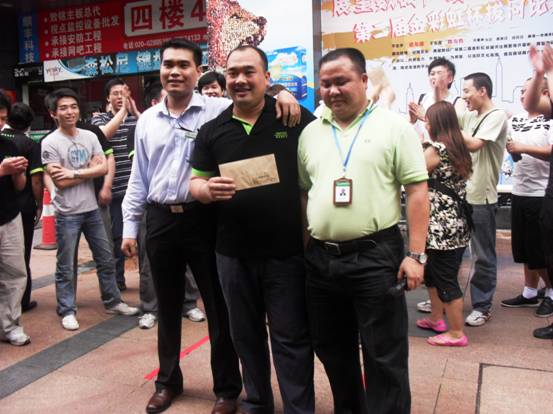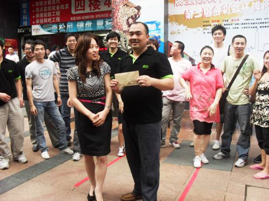 展望數(shù)碼廣場(chǎng)的副總為我們頒獎(jiǎng),后面的同事們啊,個(gè)個(gè)可都是得意洋洋的