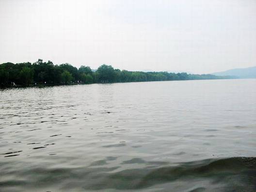 西湖水 我們坐上游船泛舟西湖,西湖的水很綠,綠得像一塊翡翠。波光凌凌的湖面籠罩著一層薄薄的水汽,宛若輕柔的面紗般,朦朧了西湖國(guó)色天香的美麗容顏。