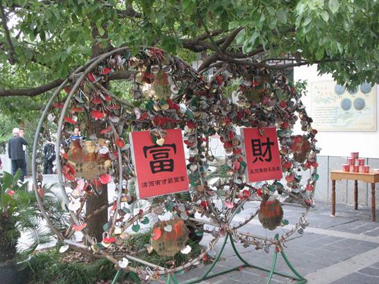 千島湖 我們一行隨導(dǎo)游坐船來到了湖上,放眼望去,整個(gè)湖面相當(dāng)?shù)那宄海u競(jìng)秀,群山疊翠,若隱若現(xiàn),朦朦朧朧。湖面上,一座座蒼翠欲滴的小島星羅棋布,遠(yuǎn)處水天相接處煙波浩渺、大氣磅礴,近處湖水顯出深碧色,像一塊碩大無比的翡翠,湖邊細(xì)浪在微風(fēng)的吹拂下輕柔地拍打著岸邊, 令人心曠神怡。 稍作休整我們到達(dá)游湖的第一站鎖島。鎖島的面積不大,但卻是一個(gè)鎖的天地。整個(gè)島上,設(shè)置了多個(gè)掛鎖許愿的區(qū)域,游客通過掛開心鎖、同心鎖、友誼鎖、吉祥鎖、功德鎖等等,把對(duì)生活的美好祝愿留在鎖上。