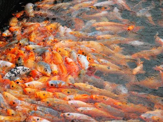 吉祥鎖 鎖島緊鄰魚島,魚島上有很多魚,我們準(zhǔn)備了些食物喂魚, 魚兒們?yōu)榱藫尩绞澄,它們擠作一團(tuán)。