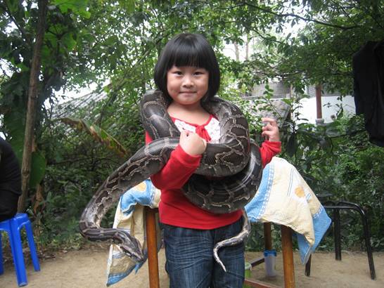 海瑞祠 隨后我們又來到了最后一站蛇島。大部分人對(duì)蛇比較畏懼,島上有劇毒的眼鏡蛇,竹青蛇,五步蛇,也有常見的無毒蛇,金環(huán)蛇,更有大大的蟒蛇。同事的女兒萱萱和大蟒蛇拍照了,膽子可真不小,隨行人員也只有這個(gè)小不點(diǎn)敢與蟒蛇合影。