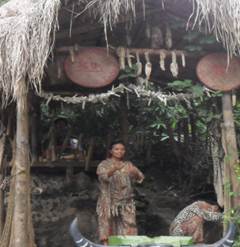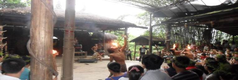 在節(jié)奏明快的“妖鼓”下,穿著色彩斑斕的獸皮,手持鋒利的長矛在山林里狩獵,燒蛇烤蚌為食,長唱著人與自然和諧的漓江漁歌和桂山獵謠。在這里,可以見證萬年前桂林甑皮巖人的生活,品味靈山秀水后歷史的滄桑與厚重,并見識(shí)現(xiàn)代社會(huì)原始部落的粗獷,感覺率真淳樸的土人的神秘和玄奇。