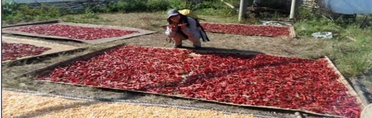 而高山、深谷的巨大落差,使得龍脊梯田周邊遠(yuǎn)有高山云霧,近有河谷急流的大景觀,形成了世界一絕的自然生態(tài)景觀。它集壯麗與秀美為一體,長使游客擊節(jié)驚嘆。迭連云際的梯田抒寫了祖輩的篳路藍(lán)縷,滿山的紅辣椒展現(xiàn)著今天的紅紅火火。