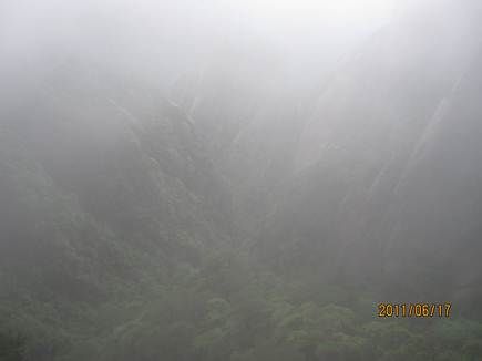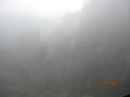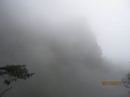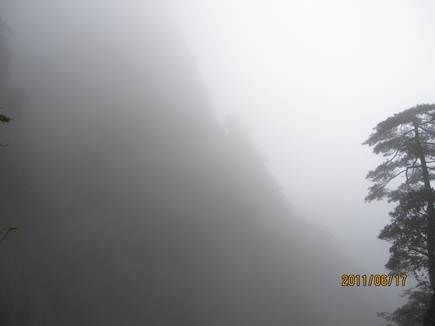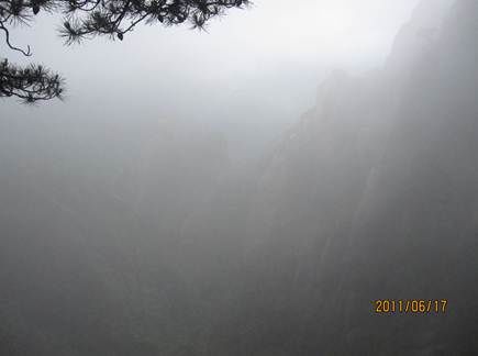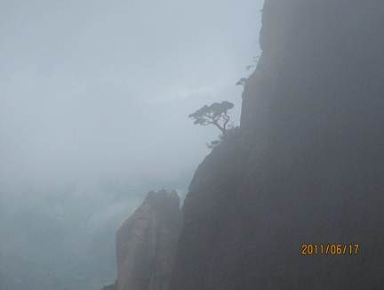 那天的三清山,由近而遠(yuǎn),霧色漸濃,仿佛進入仙境。近處的松,清晰可見,遠(yuǎn)處的山巒在霧中若隱若現(xiàn),時節(jié)已進入盛夏,山上仿佛依然初春。涼涼的風(fēng),輕輕地吹著薄薄的雨衣,靜靜地感受著風(fēng)吹雨衣的聲音,柔柔的呼吸著大山中的有氧離子,心里頓時得到釋放。