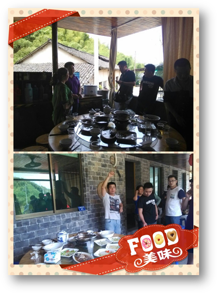 經(jīng)過三個(gè)半小時(shí)的車程,中午時(shí)分,終于來到了第一天的目的地---龍王山峽谷漂流。當(dāng)然啦,對(duì)于一群吃貨而言,漂流之前肯定得飽餐一頓啦,為此,我們選擇了當(dāng)?shù)馗浇囊患肄r(nóng)家樂,吃上了健康的有機(jī)綠色食物。在安吉,竹筍是每家每戶每餐必不可少的一道菜,在旅途的這兩天中,我們每餐的竹筍都是不一樣的,做法吃法各式各樣,但頓頓都是極其美味,極受歡迎,LOOK,我們上分都是“光盤”一族哦,表揚(yáng)表揚(yáng)~~~