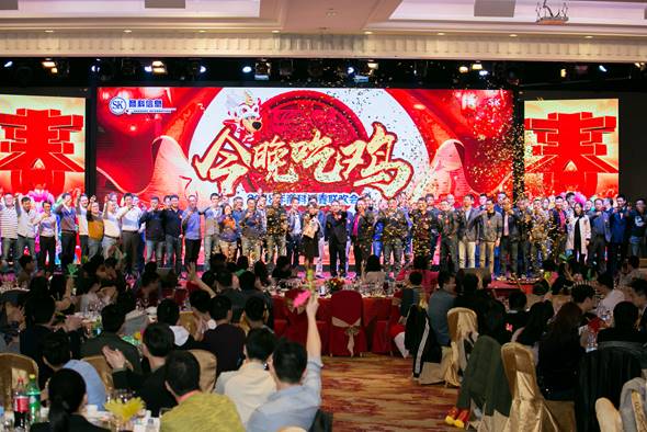 隨后,孫董事長邀請公司所有的經(jīng)理,舉杯上臺,為大家祝酒,開啟了今晚的豐盛晚宴!