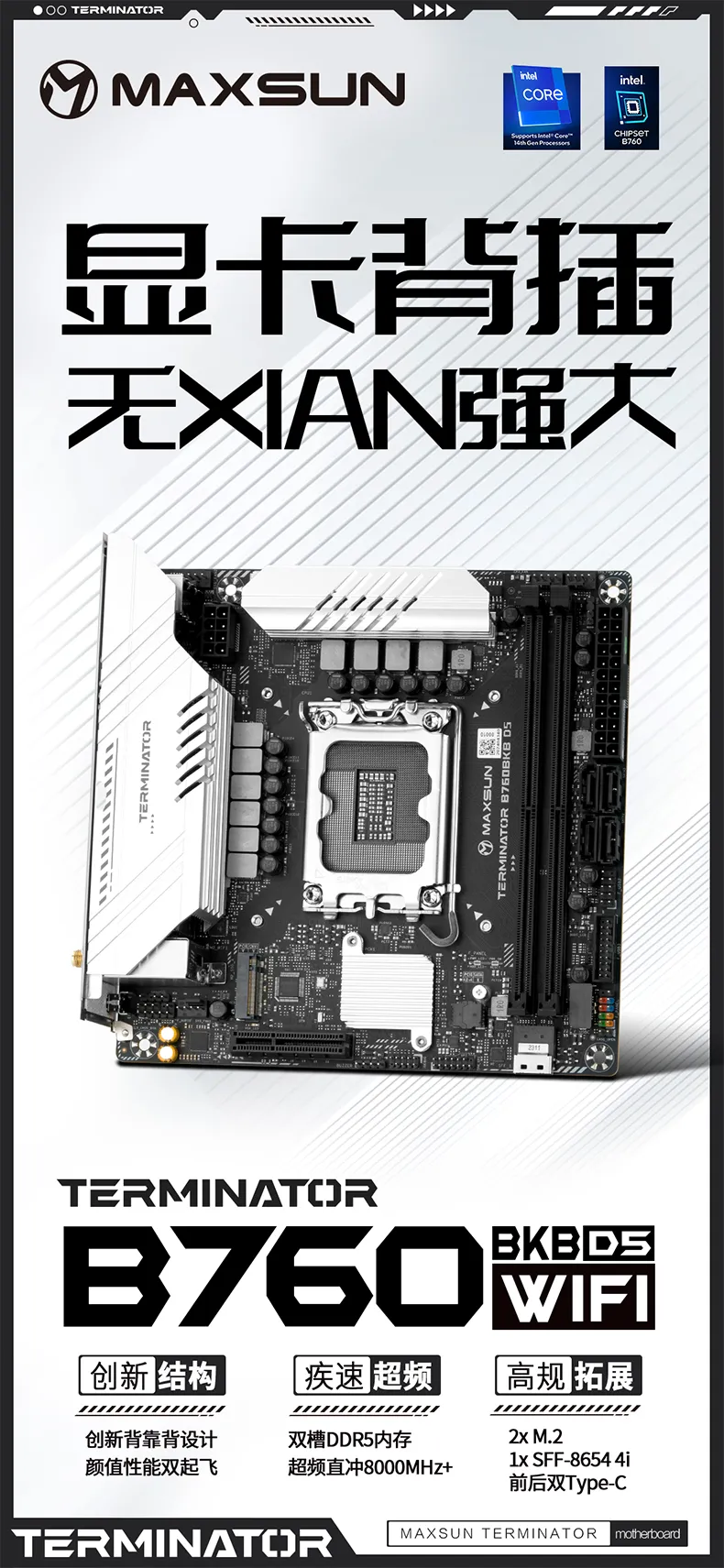 另一臺(tái)游戲主機(jī)則采用了MS-Terminator B760BKB D5 WIFI主板,重新定義ITX形式,主板和顯卡背靠背設(shè)計(jì),無需轉(zhuǎn)接延長線,避免性能損失,節(jié)省價(jià)錢的同時(shí),充分發(fā)揮顯卡性能,體積小、性能強(qiáng)、顏值高。
