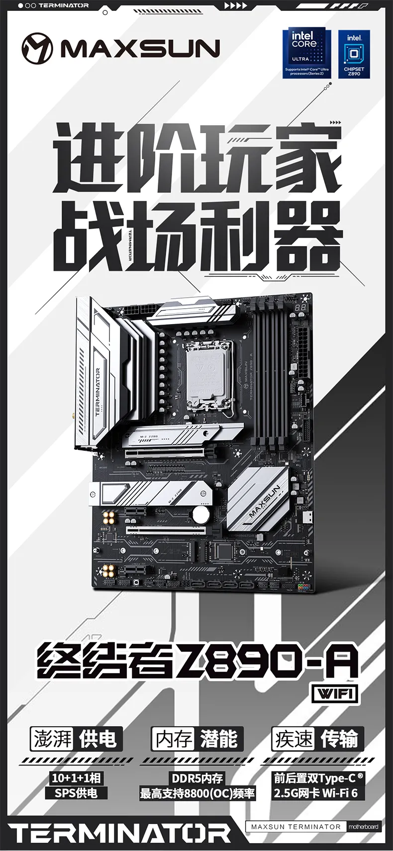 MS-Terminator Z890-A WIFI,充分釋放Ultra9 強(qiáng)悍性能,同時(shí)擁有Thunderbolt™ 4接口和PCIE5.0 x16顯卡插槽+PCIE5.0 x4 M.2接口,1*SFF-8654 4i拓展接口,Z890高性價(jià)比之選。