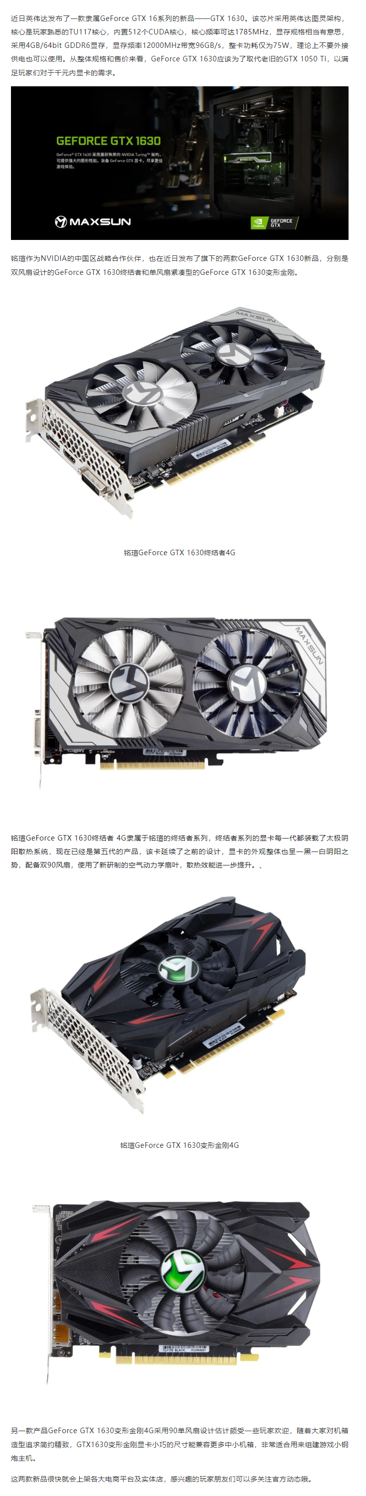 千元級更好的選擇 銘瑄GeForce GTX 1630雙雄發布