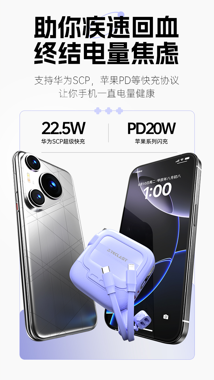 在快節(jié)奏的現(xiàn)代生活中,電子設(shè)備的續(xù)航能力常常成為我們出行的“絆腳石”。今天,臺(tái)電Teclast為各大消費(fèi)者帶來(lái)一個(gè)功能齊全又便攜的充電寶,是每個(gè)人日常出行的必備神器!